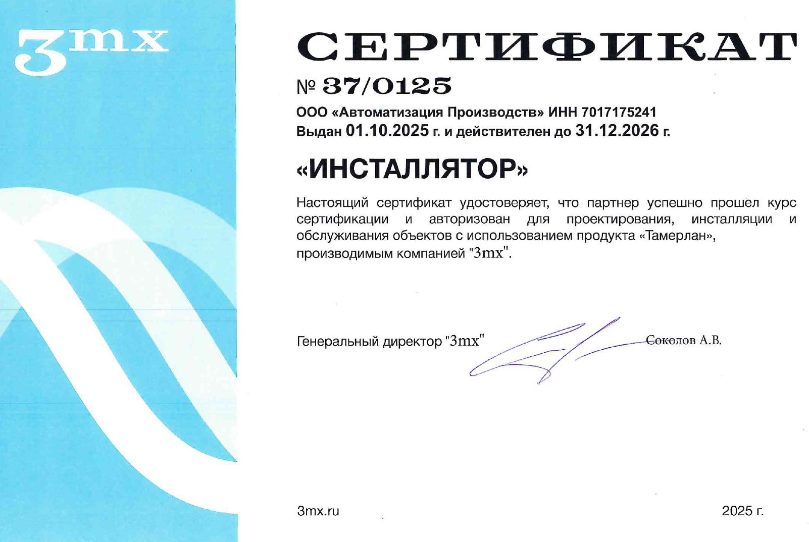 ООО "Автоматизация Производств" подписало дилерское соглашение с 3MX, в связи с чем, теперь мы являемся официальным инсталлятором по поставке и монтажу комплексных решений "Тамерлан" для защиты объектов от БПЛА.