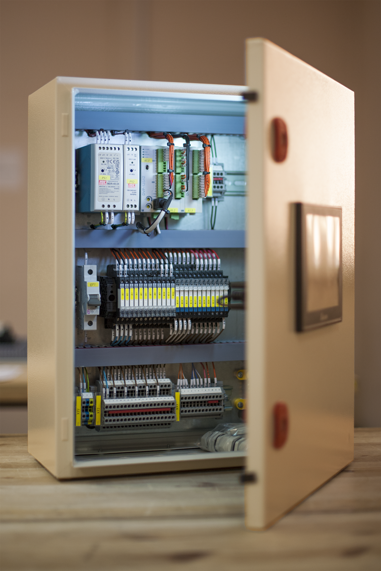 Шкаф предназначен для сбора данных с фильтра, обработки алгоритмов и управления исполнительными механизмами, как в автоматическом, так и в ручном режимах