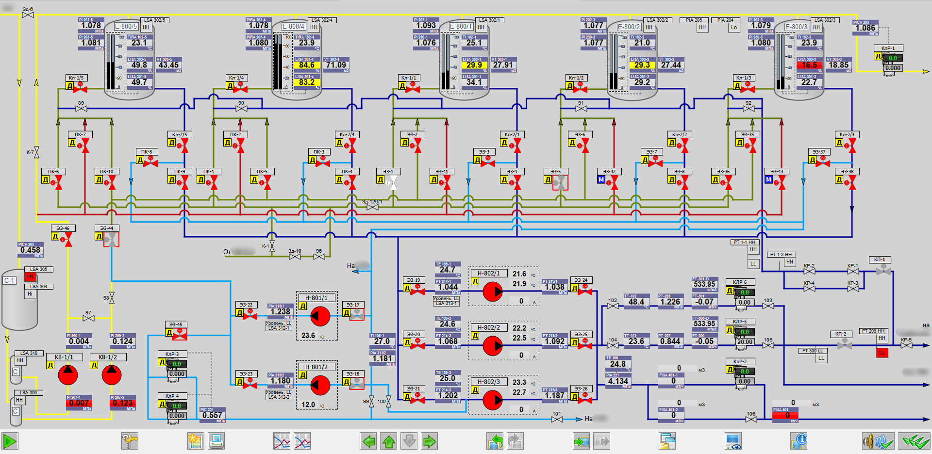 В 2021-2022 году была произведена разработка интерфейса пользователя на АРМ оператора на базе SCADA-системы APDAR с поддержкой ОС Astra Linux.Что сделано: